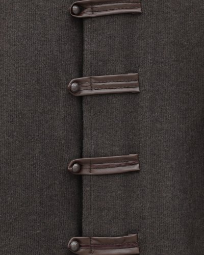 Deri Detaylı Önü Düğmeli Etekli Selanik Takım -Kahve
