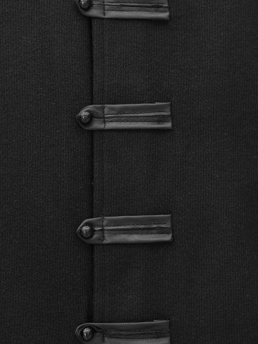 Deri Detaylı Önü Düğmeli Etekli Selanik Takım -Siyah