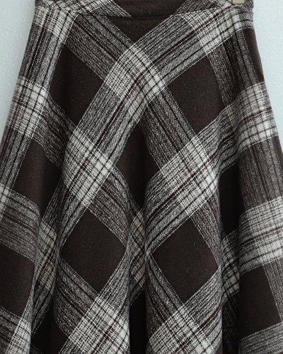 Ekose Desenli Beli Lastikli Kaşe Etek -Kahve