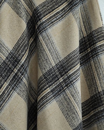 Ekose Desenli Beli Lastikli Kaşe Etek -Vizon
