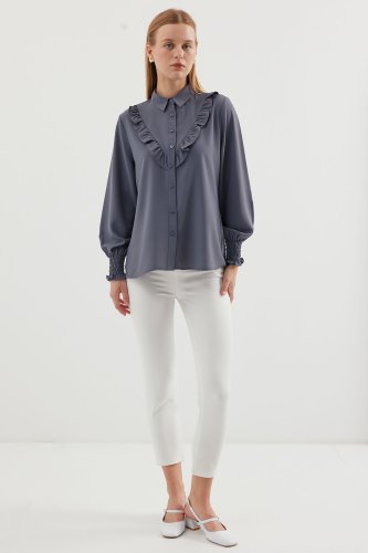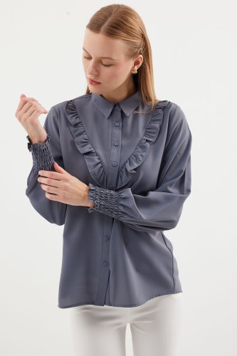 20223 Fırfırlı Uzun Kol Gömlek - Gri