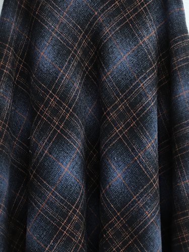 Ekose Desenli Beli Lastikli Kaşe Etek -İndigo