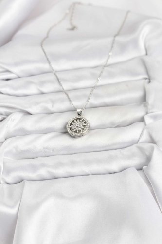 316L Çelik Zincir Gümüş Renk Kutup Yıldızı Kapaklı Model Kadın Kolye