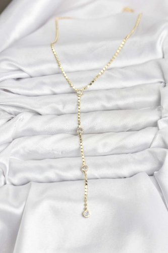 316L Çelik Gold Renk Ezme Zincir Model Y Kadın Kolye