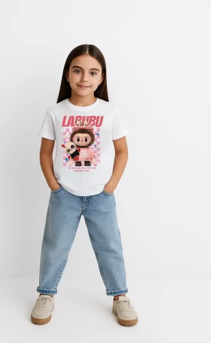 Kız Labubu Çocuk Baskılı T-Shirt - Beyaz