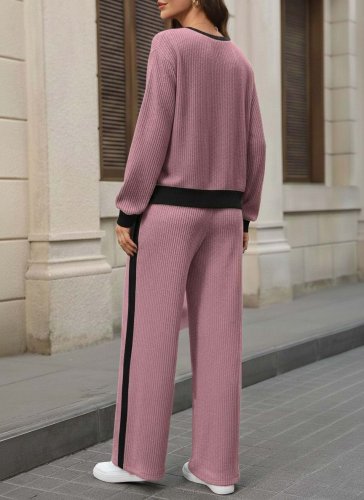 Kadın uzun kollu bisiklet yaka şardonlu kaşkorse bluz ve pantolon ikili takım