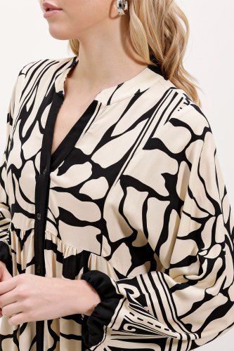 2423 Otantik Desenli Tesettür Elbise - CSiyah