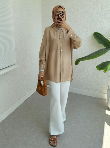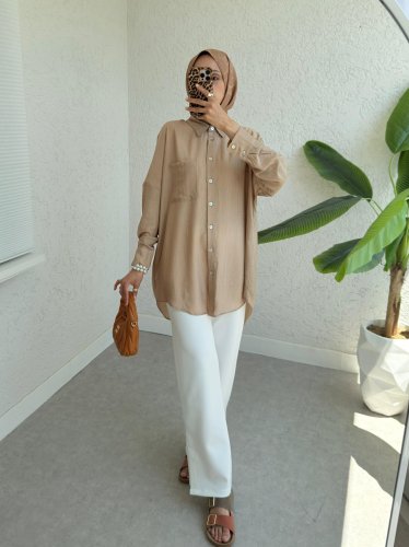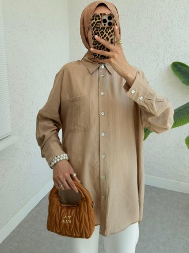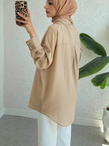 Tek Cepli Arkası Uzun Salaş Gömlek -Vizon