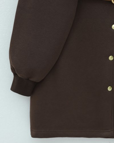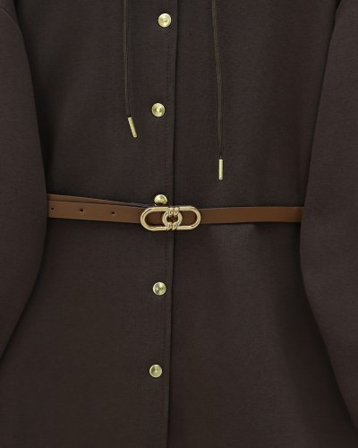 Kapşonlu Önü Çıtçıtlı Beli Kemerli Üç İplik Sweat Kap -Kahve