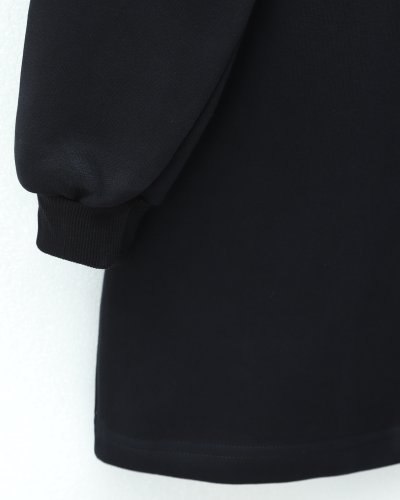 Kapşonlu Önü Çıtçıtlı Beli Kemerli Üç İplik Sweat Kap -Siyah