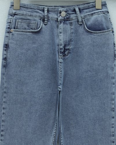 Cepli İspanyol Paça Likralı Fermuarlı Kot Pantolon -Buz Mavi