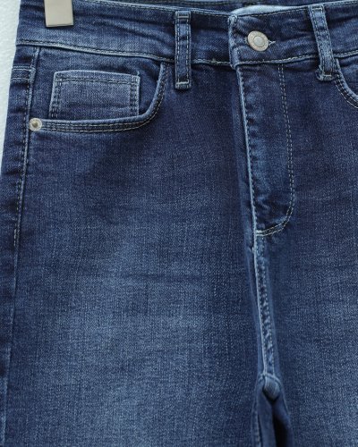 Cepli İspanyol Paça Likralı Fermuarlı Kot Pantolon -İndigo