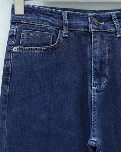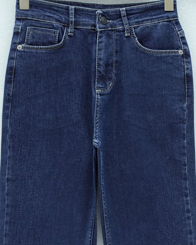 Cepli İspanyol Paça Likralı Fermuarlı Kot Pantolon -Koyu Mavi