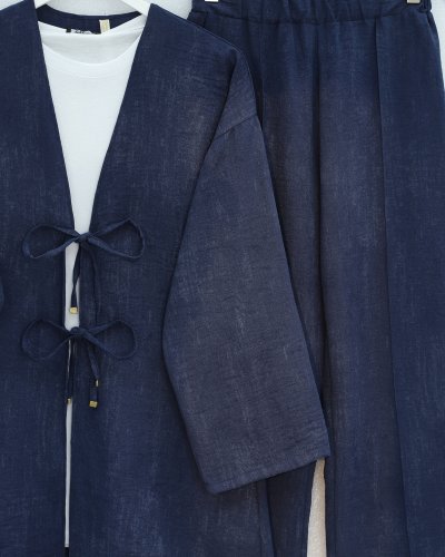 Önü Bağlamalı Pantolonlu Keten Kimono Takım -Laci