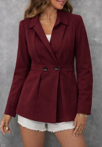 Kadın düğme ve plise detay arkası lastikli ceket
