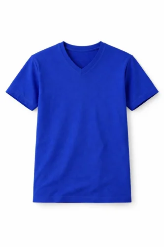 Genç Erkek Çocuk V Yaka Tişört Yazlık Model Günlük Basic Body - Saks Mavisi
