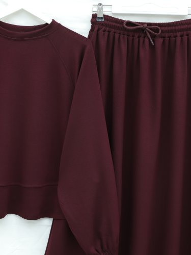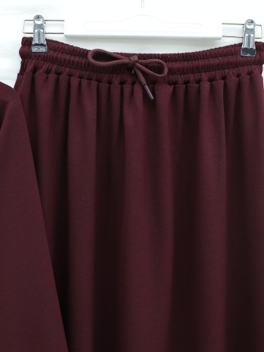 Yuvarlak Yaka Yarasa Kol Beli Lastikli Etekli Oyşo Takım -Bordo