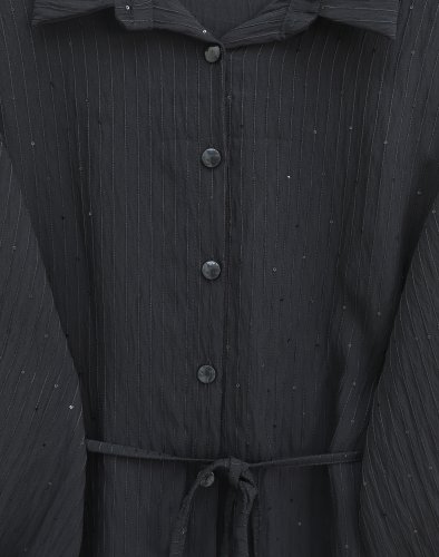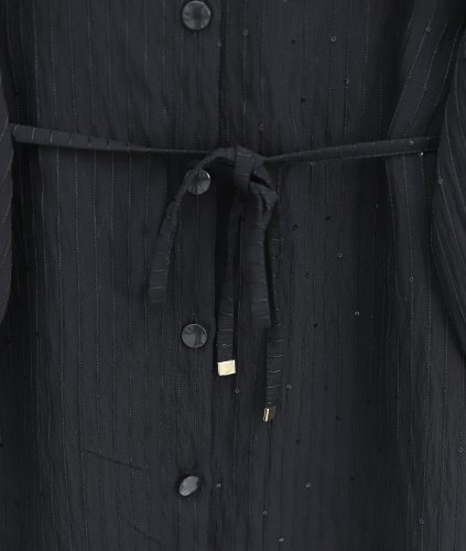 Beli Kemerli Dikiş Ve Pul Detaylı Düğmeli Gömlek -Siyah