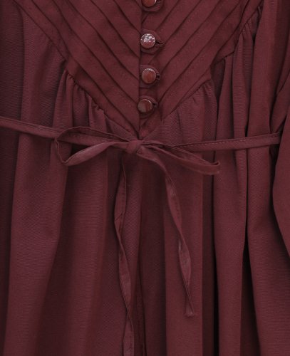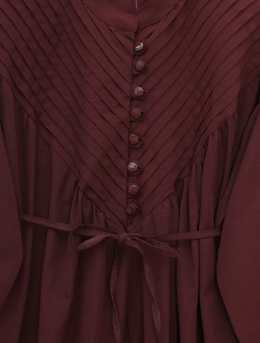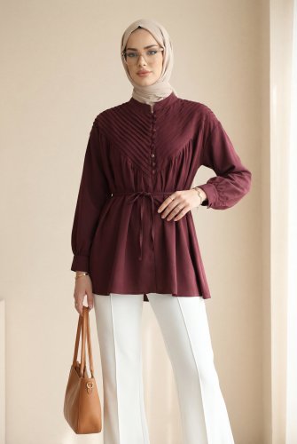 Yarım Düğmeli Nervürlü Bağcıklı Gömlek -Bordo