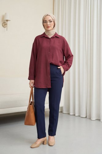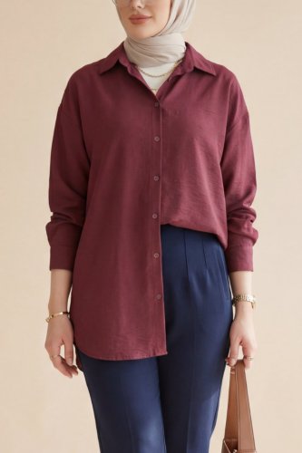 Arkası Uzun Düğmeli Modal Gömlek -Bordo