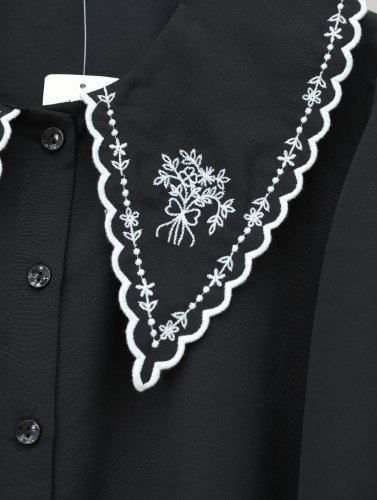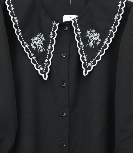 Bebe Yaka Fistolu Kolu Lastikli Poplin Gömlek Bluz -Siyah