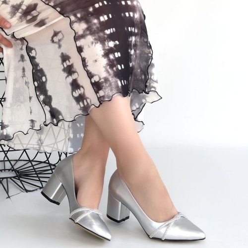 Rewin Gümüş Cilt Topuklu Ayakkabı