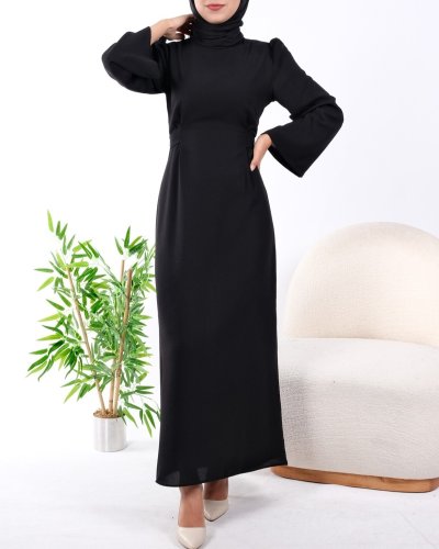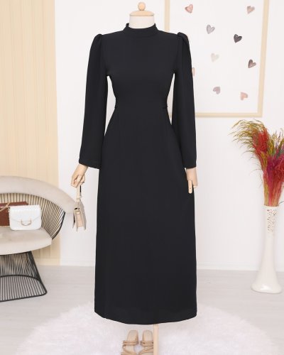 Hakim Yaka Belden Bağlamalı Elbise -Siyah