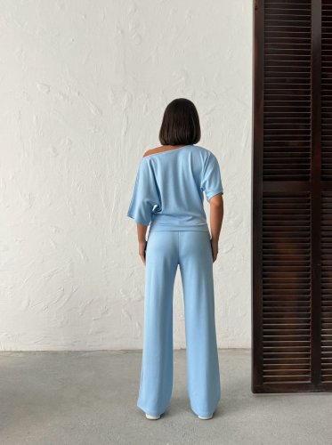 Kadın İsa kollu kayık yaka bluz ve pantolon misal kumaş ikili takım