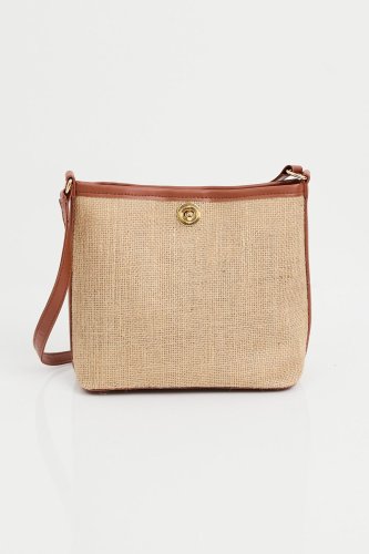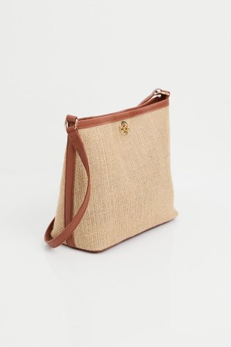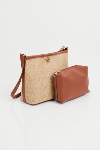 010174 Yavrulu Hasır Omuz Çantası - Taba