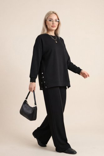 Yanları Çıtçıtlı Çimalı Pantolonlu Oyşo Takım -Siyah