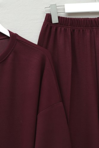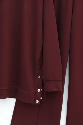 Yanları Çıtçıtlı Çimalı Pantolonlu Oyşo Takım -Bordo