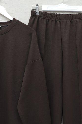Yanları Çıtçıtlı Çimalı Pantolonlu Oyşo Takım -K Kahve