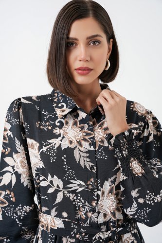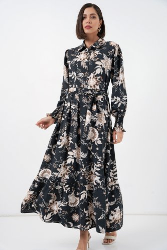 Kuşaklı Tesettür Elbise 2589 - Y.Siyah