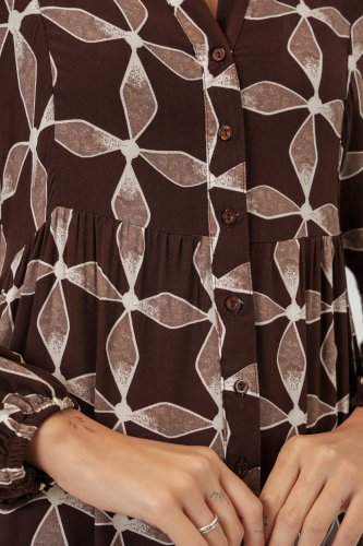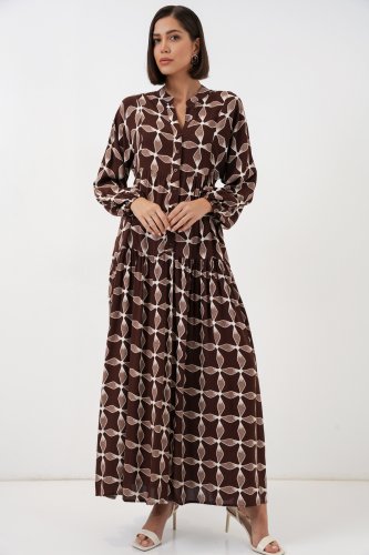 Desenli Uzun Tesettür Elbise 2585 - A.Kahve