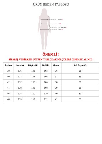 Bu, bedeninizi bulmanıza yardımcı olacak yaklaşık tablodur.