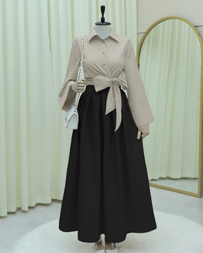 Yan Bağlamalı İspanyol Kol Düğmeli Gömlek -Açık Vizon