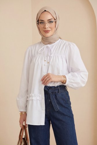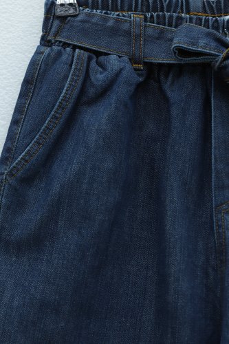 Beli Kuşaklı Lastikli Cepli Kot Pantolon -Tint