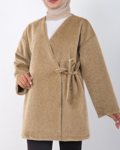 Yandan Bağlamalı Kürklü Ceket -Vizon