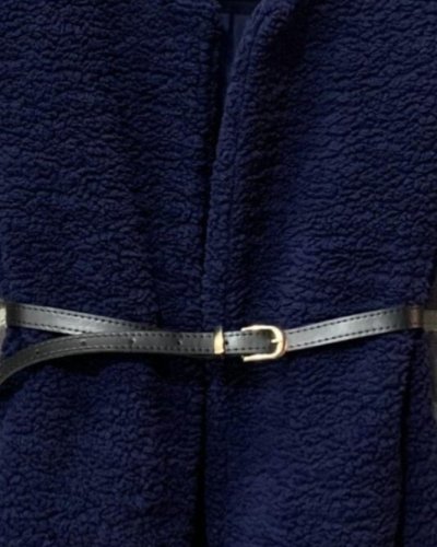 Beli Kemerli Çift Cepli Astarlı Peluş Yelek -Laci