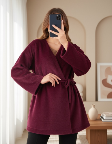 Yandan Bağlamalı Kürklü Ceket -Bordo