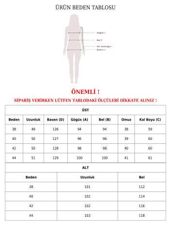 Bu, bedeninizi bulmanıza yardımcı olacak yaklaşık tablodur.