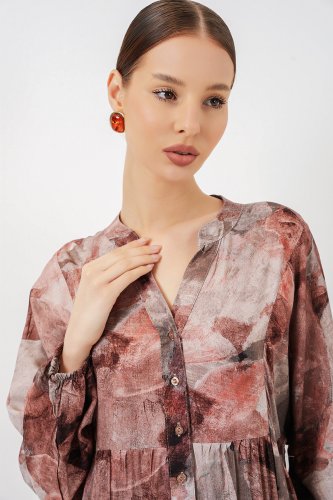 Desenli Uzun Tesettür Elbise 2585 - D.Gül Kurusu