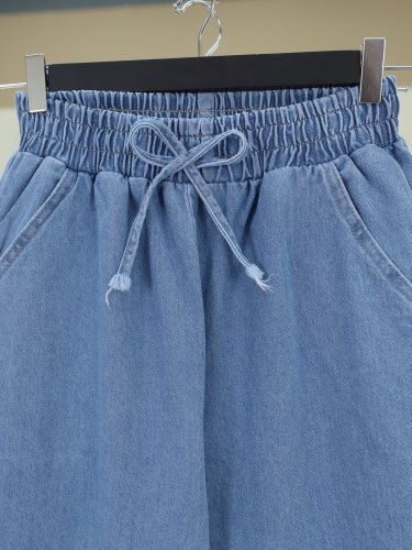 Beli Lastikli Cepli Bol Paça Kot Pantolon -Açık Mavi