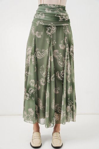 Desenli Şifon Etek 8057 - E.Yeşil