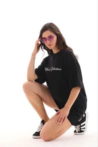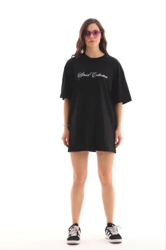 Baskılı T-Shirt Kısa Kol Bisiklet Yaka Regular Rahat Kalıp Günlük Tişört - Siyah