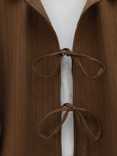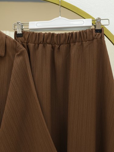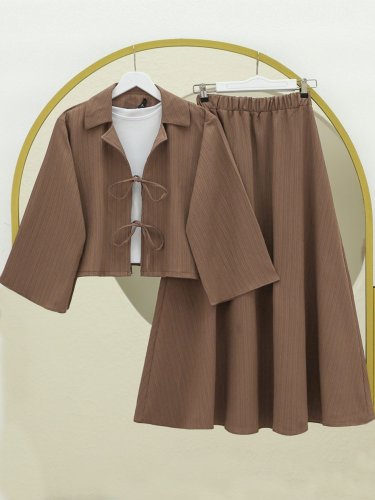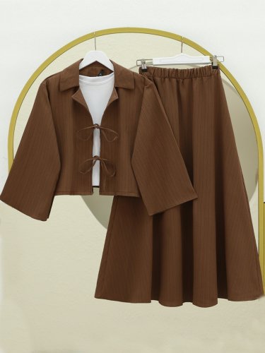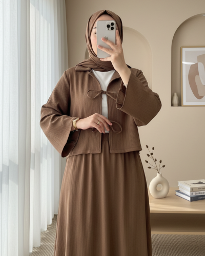 Önü Bağlamalı Etekli Krinkıl Takım -Kahve