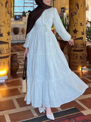 Eteği fırfırlı Dantel Şerit Detaylı Elbise -Beyaz
