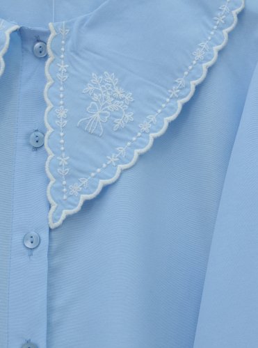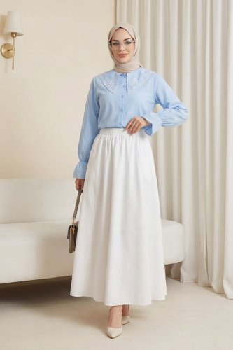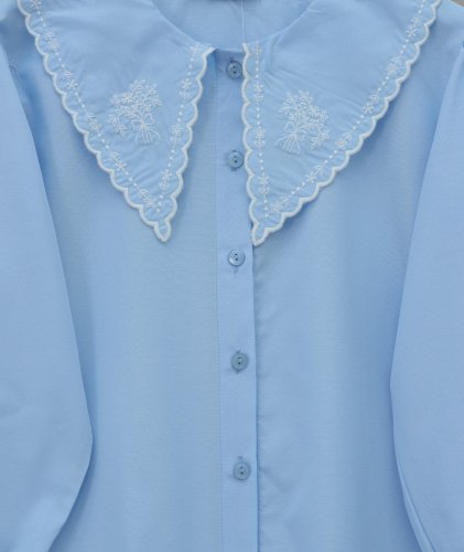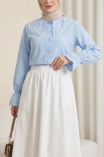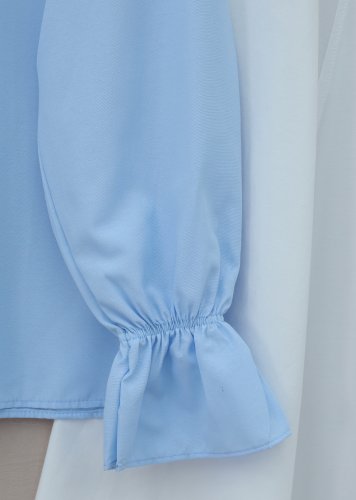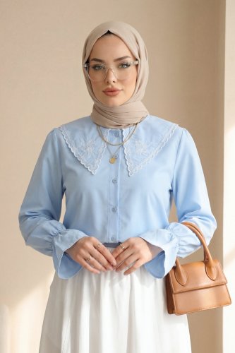 Bebe Yaka Fistolu Kolu Lastikli Poplin Gömlek Bluz -Bebe Mavi