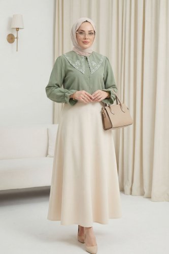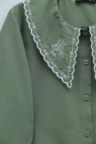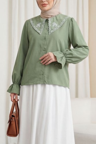 Bebe Yaka Fistolu Kolu Lastikli Poplin Gömlek Bluz -Çağla Y