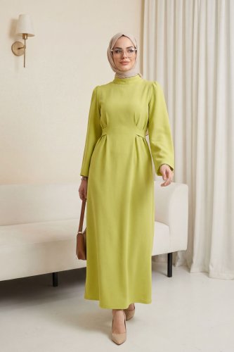 Hakim Yaka Belden Bağlamalı Elbise -Yağ Yeşili